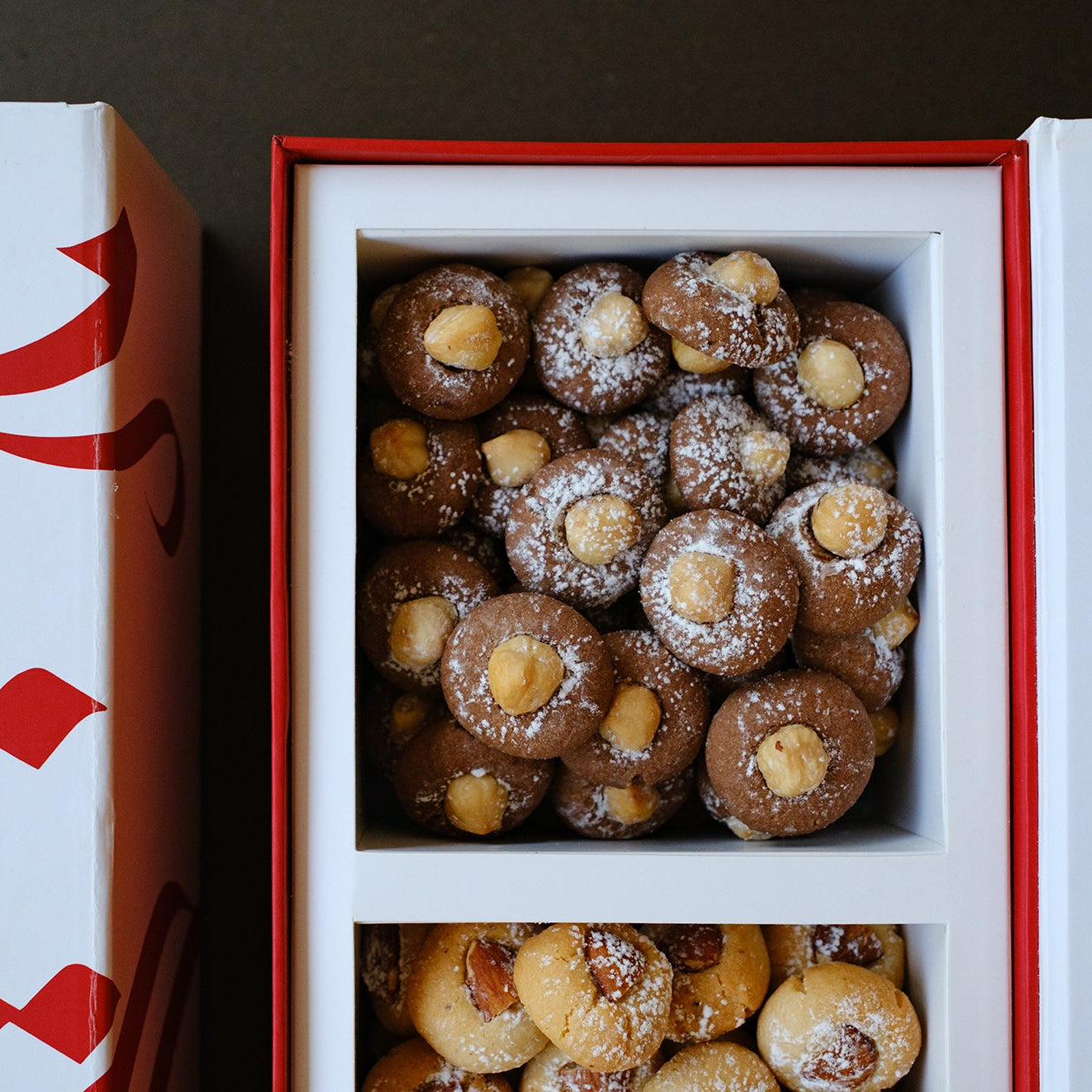 It unites the elegance of Arabic calligraphy with the timeless taste of traditional Guriba cookies, featuring four exquisite flavors: